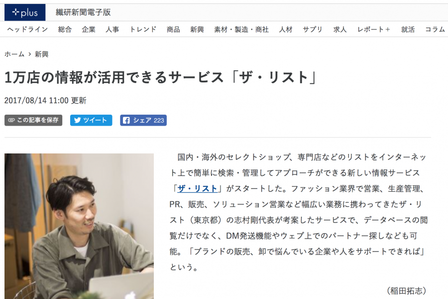 8/14付けの繊研新聞に『THE LIST』の サービス概要を掲載いただきました。