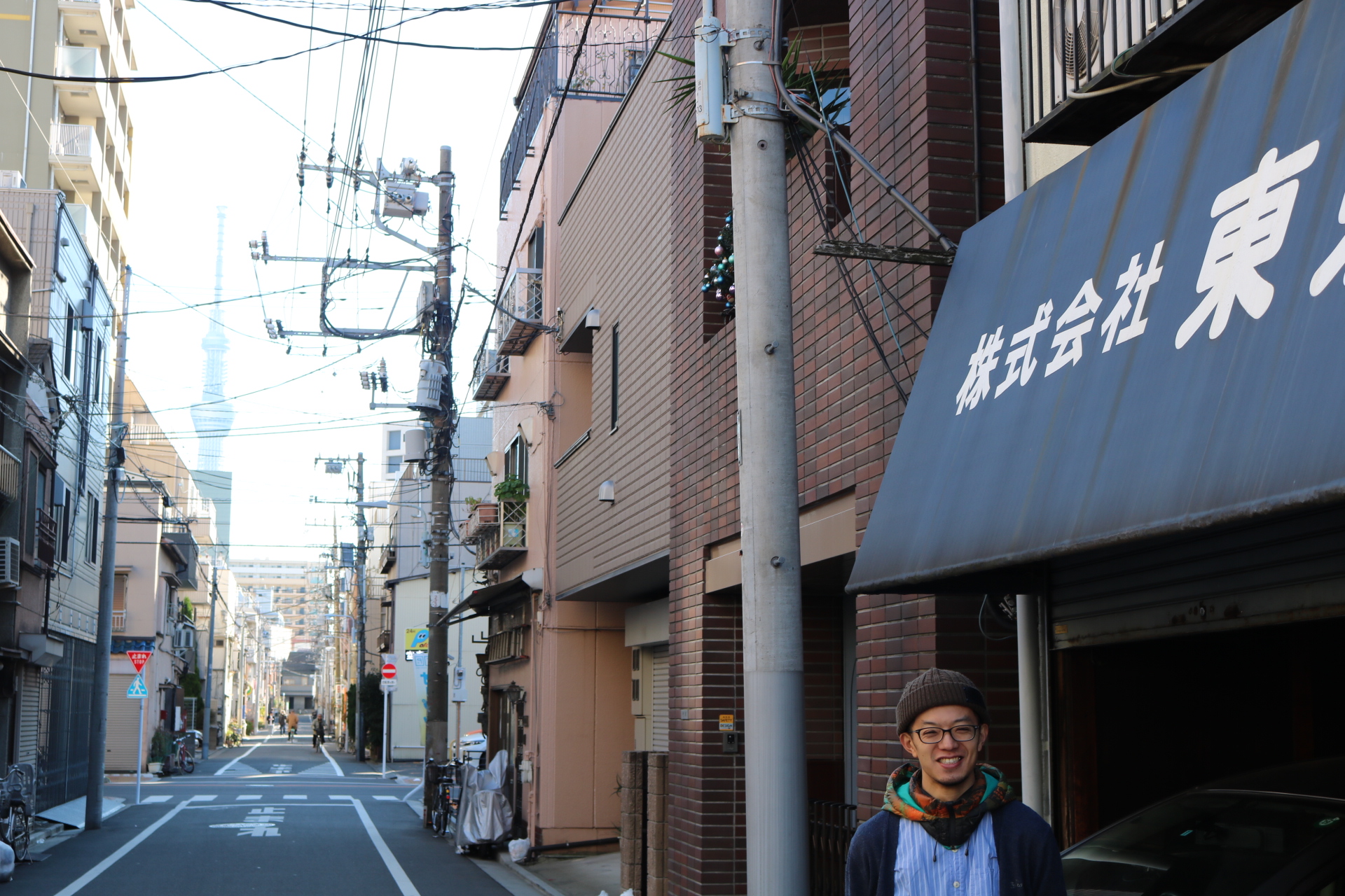 (最後はスカイツリーを望みながら東京靴研前にて)
